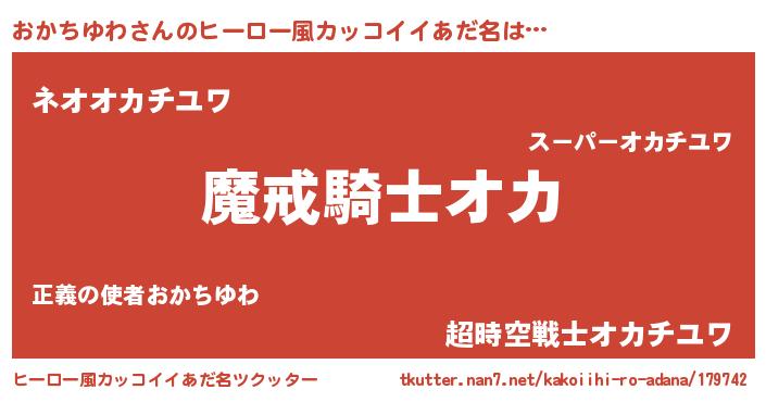 | 男性向けラノベタイトル風あだ名 | 『ダンジョンにおかちゆわを求めるのは間違っているだろうか』 |