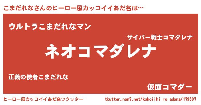 | 意味不明あだ名 | 『永久保存こまだれな』『自称こまだれな』 |