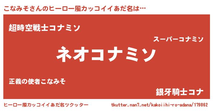 | 胡散臭い通販商品みたいなあだ名 | 『前代未聞の健康食品…その名も「こなみそ」』 |