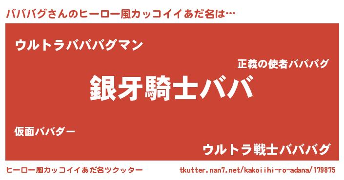 | 女子向けラノベタイトル風あだ名 | 『バババグの卵を拾いまして』 |