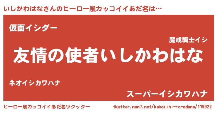| 男性向けラノベタイトル風あだ名 | 『おまえをオタクにしてやるから、俺をいしかわはなにしてくれ! 』 |