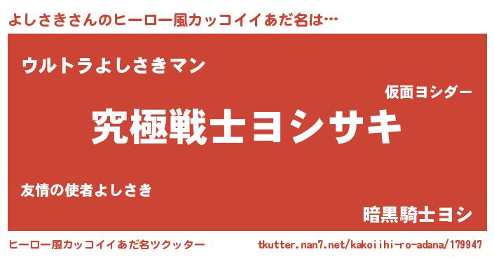 | ポケモン風あだ名 | 『ヨシセウス』『ヨシサダネ』 |