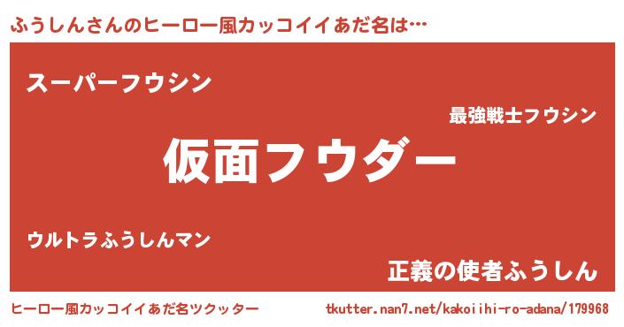 | 女子向けラノベタイトル風あだ名 | 『悪役ふうしんに転生したようですが、知った事ではありません』 |