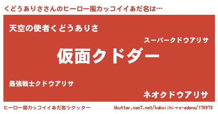 | 意味不明あだ名 | 『住所不定無職くどうありさ(1歳)』 |