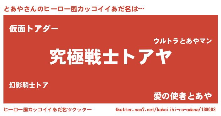 | 恥ずかしいあだ名 | 『トアヤデラックス』『とあっちょ』 |