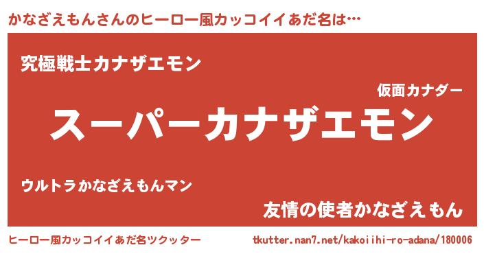 | 男性向けラノベタイトル風あだ名 | 『かなざえもん~年齢イコール彼女いない歴の魔法使い~』 |