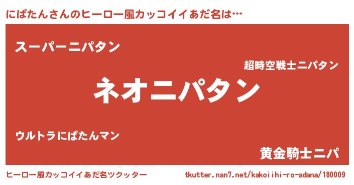 | 意味不明あだ名 | 『なめこ科にぱたん属』『自称にぱたん』 |