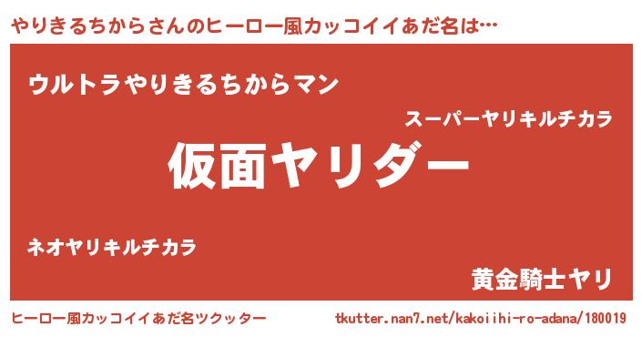 | 男性向けラノベタイトル風あだ名 | 『やりきるちからに滅ぼされるだけの簡単なお仕事です』 |