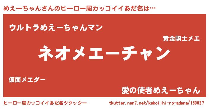 | ヘコむあだ名 | 『めえーちゃん(震え声)』『なまこ酢』 |