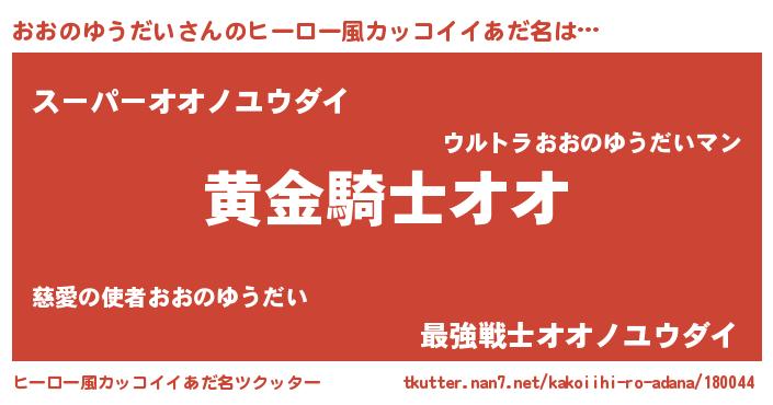 | 胡散臭い通販商品みたいなあだ名 | 『信頼と実績のサプリメント…その名も「おおのゆうだい」』 |