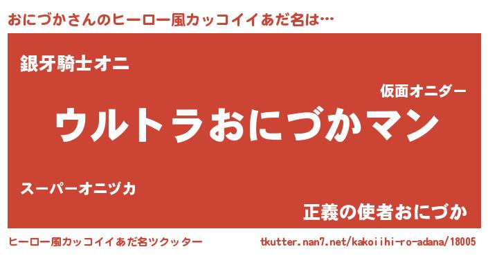 | 男性向けラノベタイトル風あだ名 | 『うちの娘の為ならば、俺はもしかしたらおにづかも倒せるかもしれない。』 |