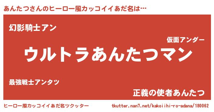 | ポケモン風あだ名 | 『アンタダネ』『ヒアンタツ』 |
