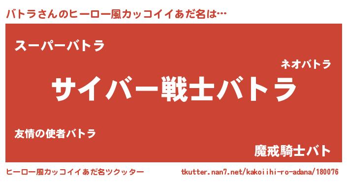 | 胡散臭い通販商品みたいなあだ名 | 『テレビで話題のアガリクス…その名も「バトラ」』 |