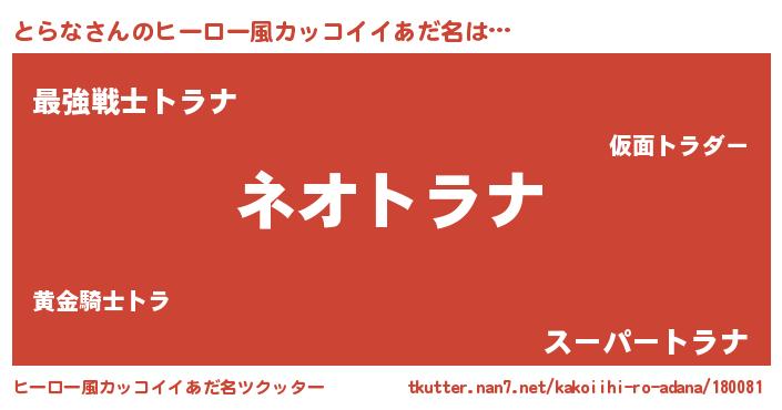 | ヘコむあだ名 | 『とらな(爆)』『とらふぇ~』 |