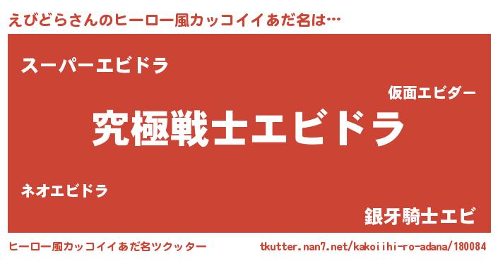 | 男性向けラノベタイトル風あだ名 | 『Re:えびどらから始める異世界生活』 |