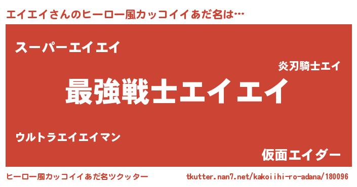 | 女子向けラノベタイトル風あだ名 | 『闇のエイエイ』『エイエイは平凡を望む』 |