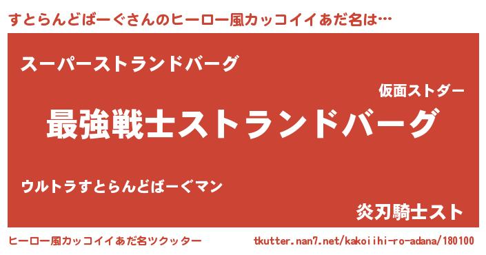 | 意味不明あだ名 | 『自称すとらんどばーぐ』 |