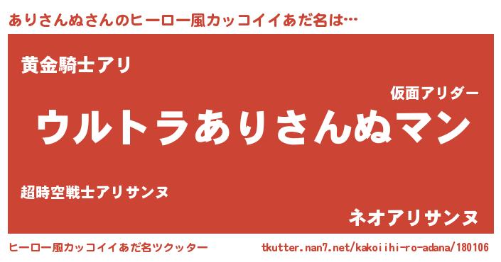 | 女子向けラノベタイトル風あだ名 | 『ありさんぬの雑貨屋さん』 |