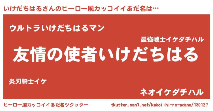 | 男性向けラノベタイトル風あだ名 | 『おまえをオタクにしてやるから、俺をいけだちはるにしてくれ! 』 |