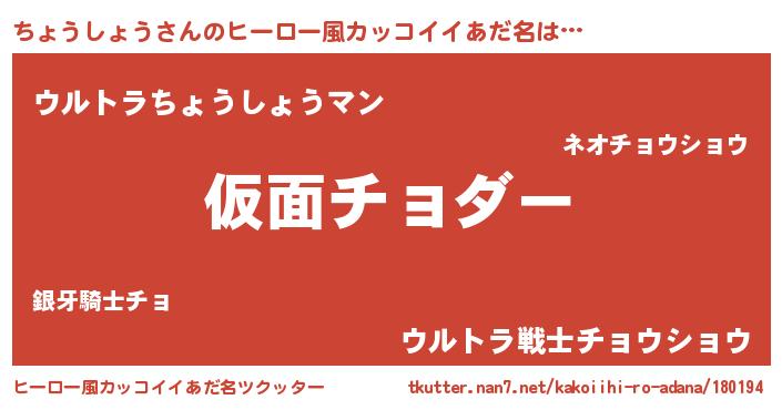 | 意味不明あだ名 | 『住所不定無職ちょうしょう(10歳)』 |