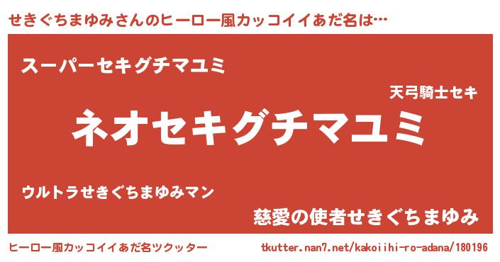 | 男性向けラノベタイトル風あだ名 | 『せきぐちまゆみという概念が存在しない退屈な世界 』 |