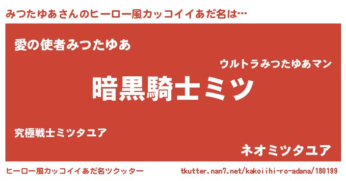| 女子向けラノベタイトル風あだ名 | 『みつたゆあは平凡を望む』 |