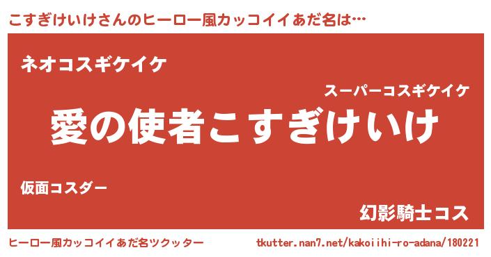 | 女子向けラノベタイトル風あだ名 | 『こすぎけいけ恋絵巻』 |