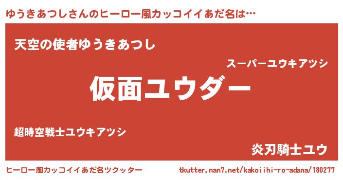 | 男性向けラノベタイトル風あだ名 | 『魔弾の王とゆうきあつし』 |