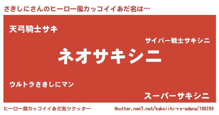 | ファンタジー風あだ名 | 『サキディッシュ』『カークサキラー』 |