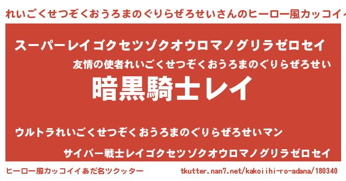 | 萌えアニメ | 主人公(れいごくせつぞくおうろまのぐりらぜろせい)のあだ名『 れいっち』 |