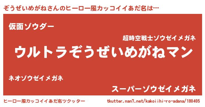 | ファンタジー風あだ名 | 『エターナルゾウゼイメガネー』 |