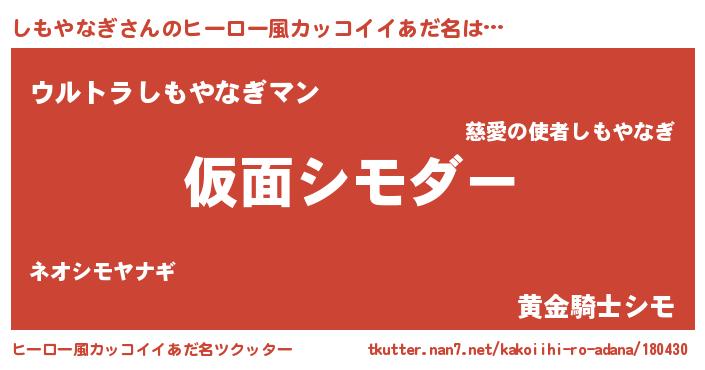 | 意味不明あだ名 | 『住所不定無職しもやなぎ(10歳)』 |