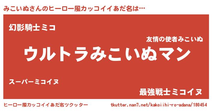 | 女子向けラノベタイトル風あだ名 | 『男装みこいぬの憂鬱な任務』 |