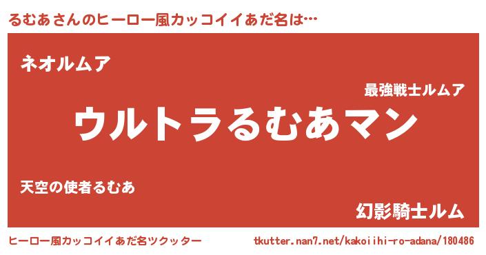| 男性向けラノベタイトル風あだ名 | 『るむあに滅ぼされるだけの簡単なお仕事です』 |
