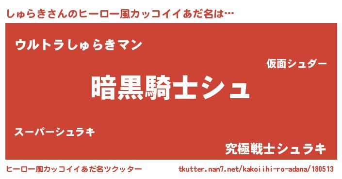 | 女子向けラノベタイトル風あだ名 | 『しゅらきは平凡を望む』 |