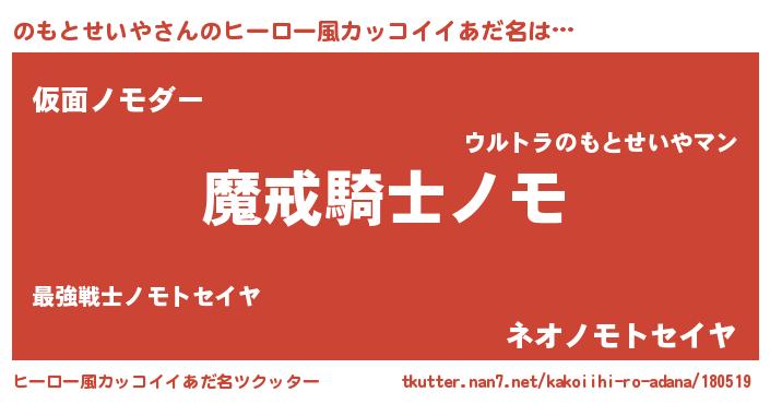 のもとせいやさんのヒーロー風カッコイイあだ名をツクッター!