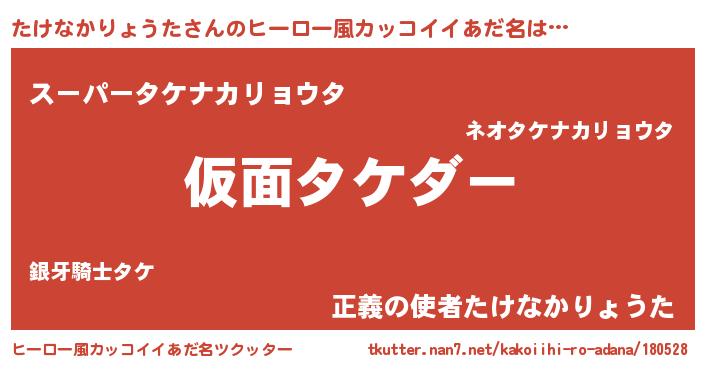 | 意味不明あだ名 | 『住所不定無職たけなかりょうた(74歳)』 |