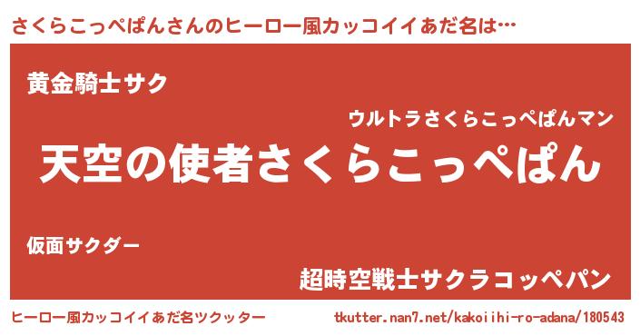 | 伝説のあだ名 | 『救世主となる錬金術士さくらこっぺぱん』 |
