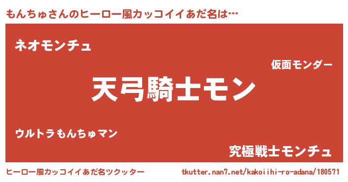 | 男性向けラノベタイトル風あだ名 | 『もんちゅの嫁は女の子じゃないと思った?』 |