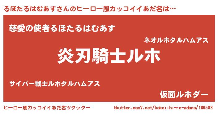 | 男性向けラノベタイトル風あだ名 | 『るほたるはむあすの嫁は女の子じゃないと思った?』 |