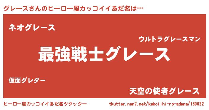 | 男性向けラノベタイトル風あだ名 | 『グレースに滅ぼされるだけの簡単なお仕事です』 |