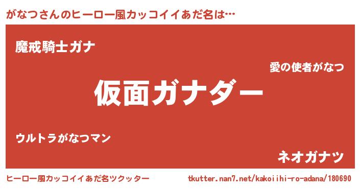 | 男性向けラノベタイトル風あだ名 | 『この素晴らしい世界にがなつを!』 |