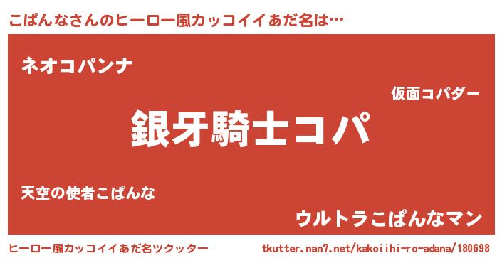 | 男性向けラノベタイトル風あだ名 | 『ダンジョンにこぱんなを求めるのは間違っているだろうか』 |