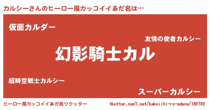 | 男性向けラノベタイトル風あだ名 | 『カルシーの嫁は女の子じゃないと思った?』 |