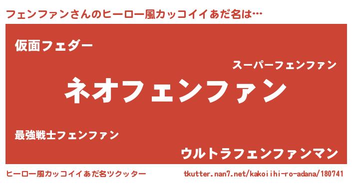 | 男性向けラノベタイトル風あだ名 | 『フェンファンという概念が存在しない退屈な世界 』 |