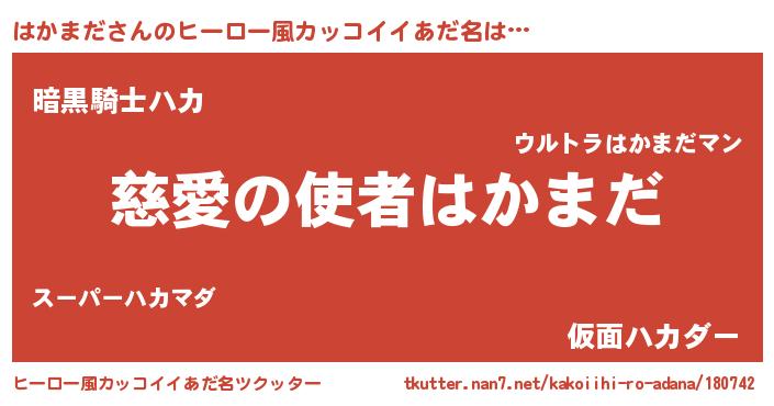 | 男性向けラノベタイトル風あだ名 | 『はかまだに滅ぼされるだけの簡単なお仕事です』 |