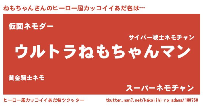 | 男性向けラノベタイトル風あだ名 | 『うちの娘の為ならば、俺はもしかしたらねもちゃんも倒せるかもしれない。』 |