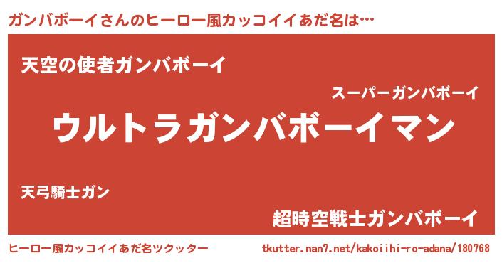 | 女子向けラノベタイトル風あだ名 | 『ガンバボーイの雑貨屋さん』 |