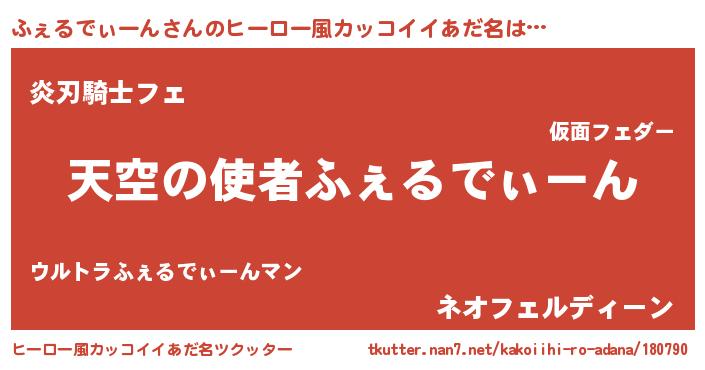 | 女子向けラノベタイトル風あだ名 | 『死神ふぇるでぃーんの再婚』 |
