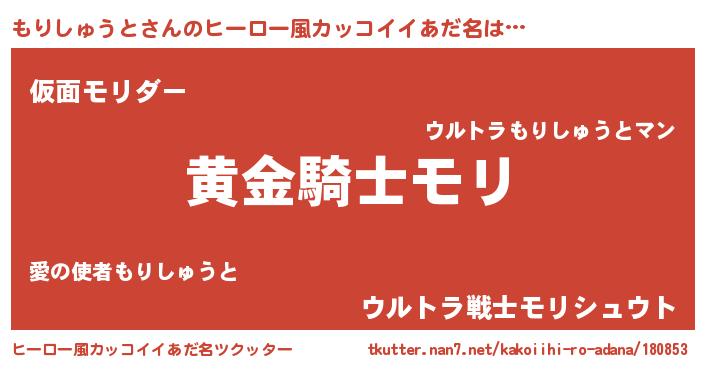 | 女子向けラノベタイトル風あだ名 | 『もりしゅうとは平凡を望む』 |